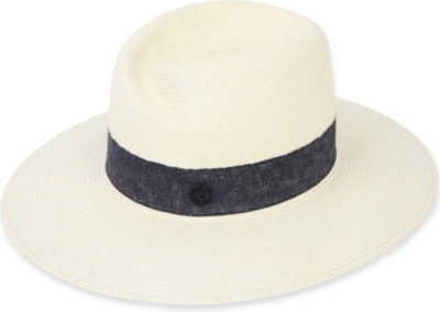 White Sewn Straw Fedora Hat Maison Michel Paris